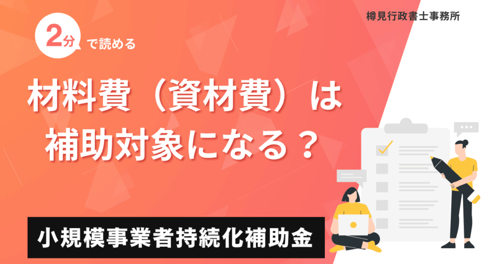 こんにちは、行政書士の樽見です。今回は「小規模事業者持続化補助金(第18回)」における材料費(資材費)は補助対象になるのか?というテーマについて解説します。 特に、大工さんや職人の方などが「新しい販路を開拓するために、作業場を新設したい」と... -